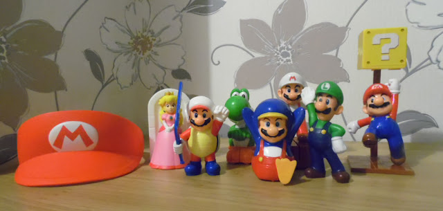 Guess what I've got to unbox this time? :) I believe it was around August 2015 that these toys were in McDonald's in the UK - I wanted to go to my local one and order 8 Happy Meals, a mix and match of hamburgers and chicken nuggets - ask if I could have one of each toy - then have a banquet with Shelly and Ash. But sadly it wasn't meant to be. Instead I found a complete set of the toys on eBay for a fraction of what the actual Happy Meals would have cost - and I didn't have to consume a vast amount of calories in the process. So as part of this set, we had a Yoshi, a Luigi, a Princess Peach and four different Mario toys. There was also a Mario hat style visor which I stupidly forgot to include in my unboxing video. D'oh. Regardless, I had a lot of fun unboxing this set of toys and having a play around with them: Here's some pictures of the Happy Meal box: